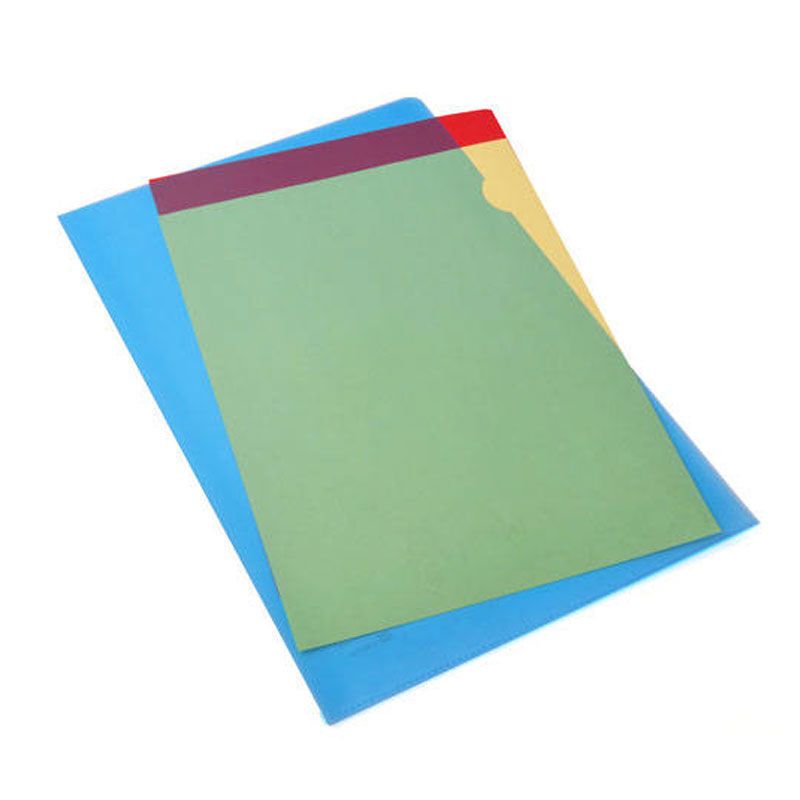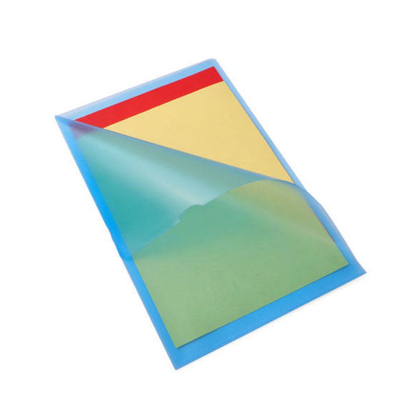 Carpeta en L (con abertura lateral) azul translucida. Para formato de hojas A4 ideal para mantener tus documentos en orden y sin perderse perderse!