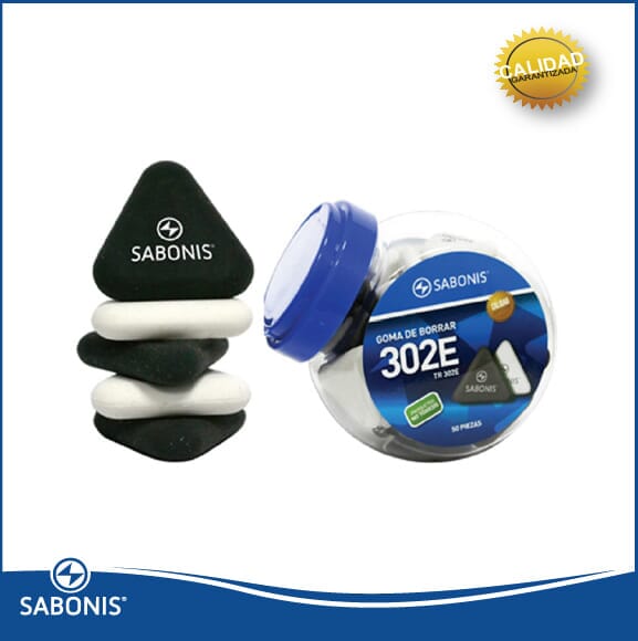 Goma de borrar triangular blanca y negra. Perfecta para llevar a todas partes contigo.