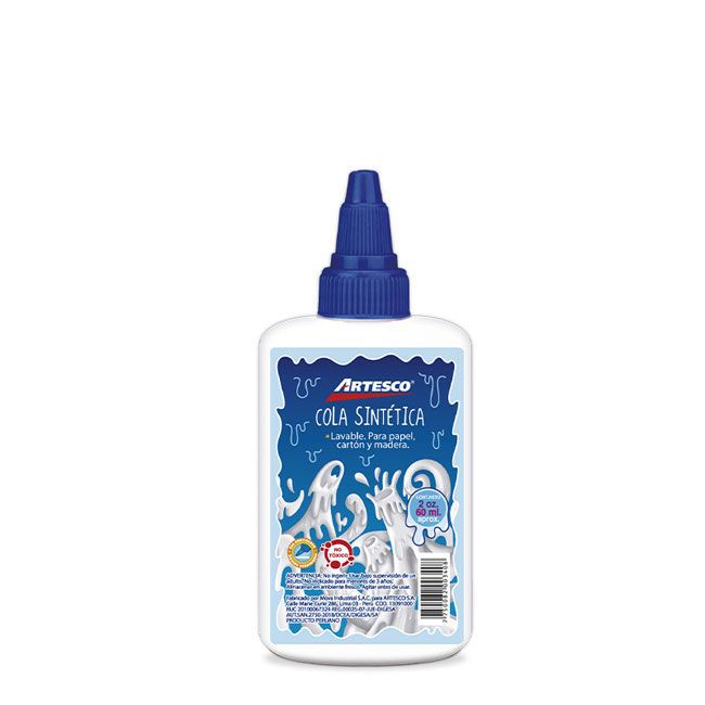 Adhesivo vinílico blanco 60ml Artesco- Excelente para manualidades y maquetería.- Al ser menos densa, permite una fácil aplicación.- Aplicable en: Tela, corcho, papel, cartón, madera, plástico, porcelana, goma eva, espuma, vinilo, entre otros.- Se extrae rápido de las manos.- Presentación: 60ml.
