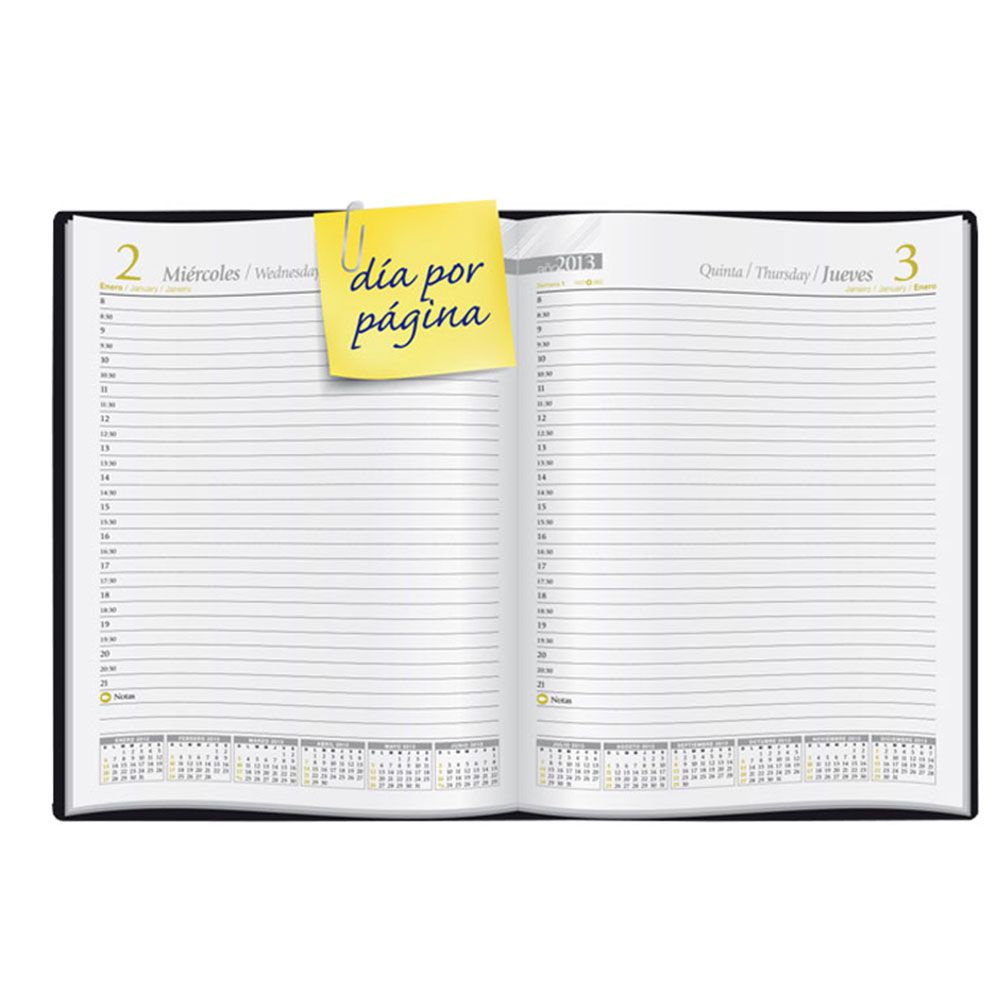 Agenda diaria 2024 con cubierta semidura con solapa interior y costuras artesanales. Colores Disponibles: Negro, marrón o azul.
