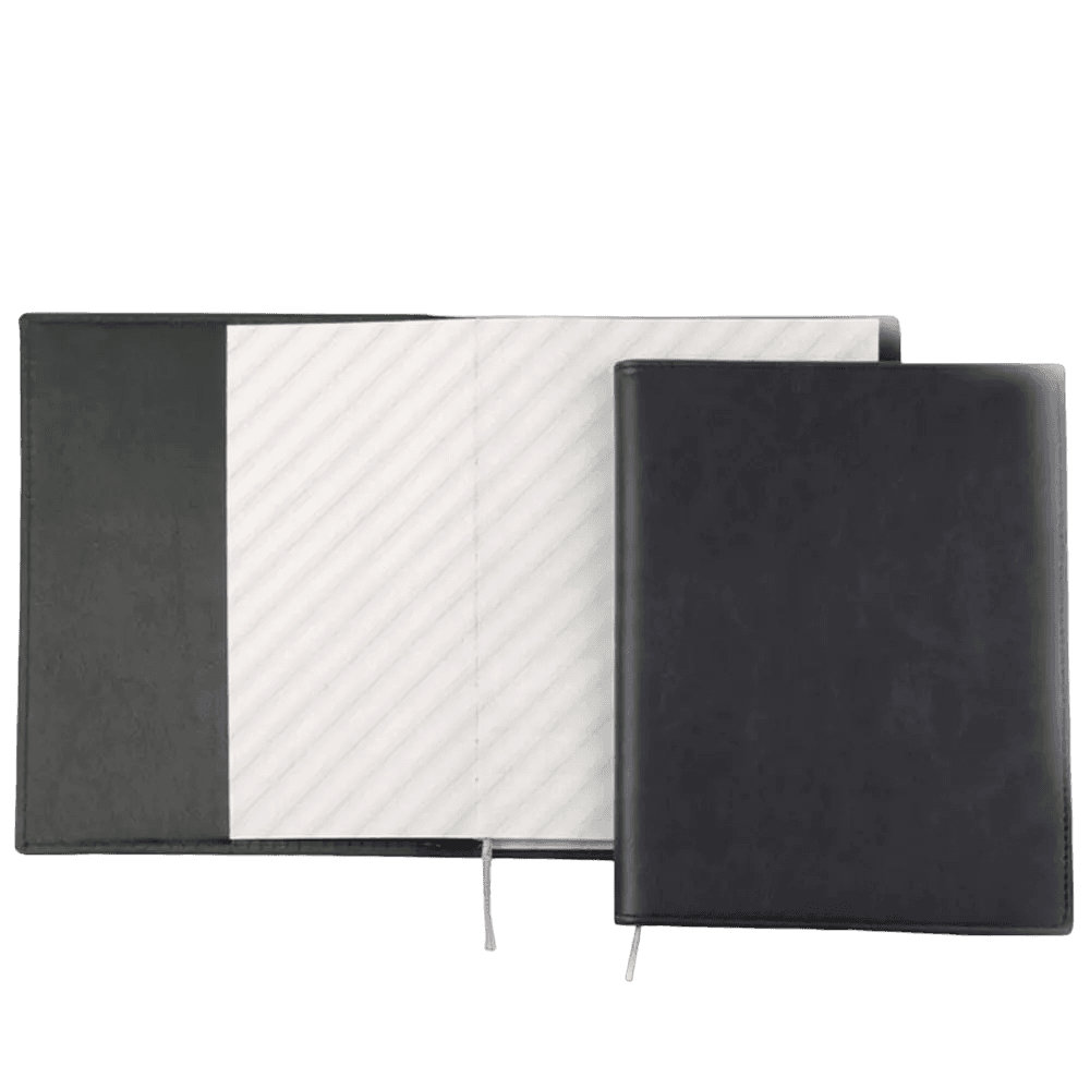 - Cubierta semidura, solapa interior y costuras artesanales.