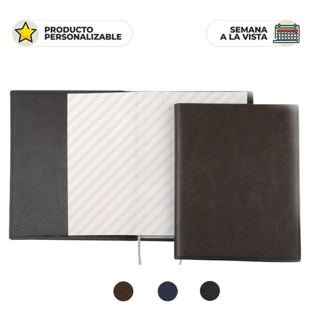 - Cubierta semidura, solapa interior y costuras artesanales.