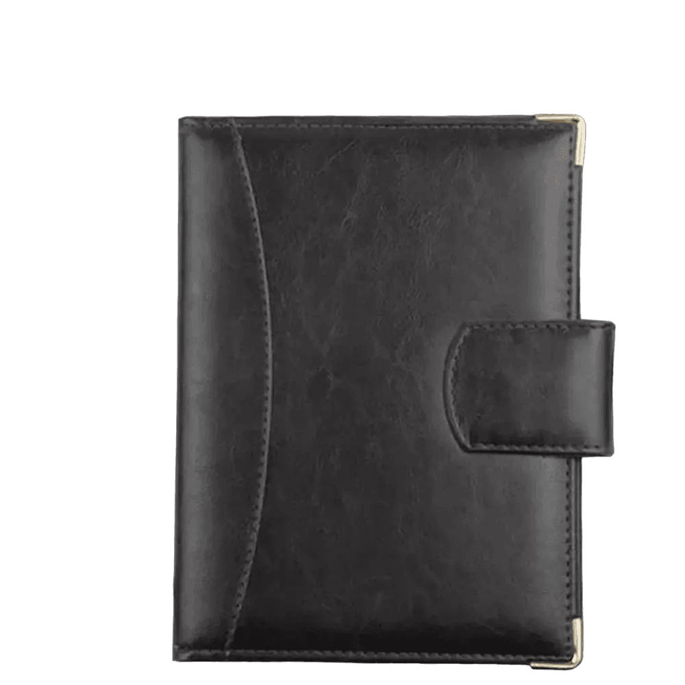 Agenda 2026 semanal con cubierta acolchada cosida, solapa interior, esquineros y presilla con broche imantado. Colores Disponibles: Negro, marrón o azul.