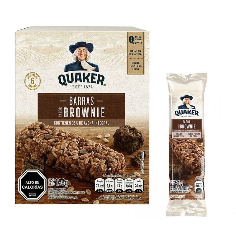 Barra de Cereal 21g Quaker Brownie x6¿Deseas un snack tipo postre, y que sea saludable a la vez? ¡Entonces tienes que probar las barras de cereal de Quaker! deliciosas barritas con bajo contenido calórico y menos de 100 calorías por unidad.- Contiene 6 barras.