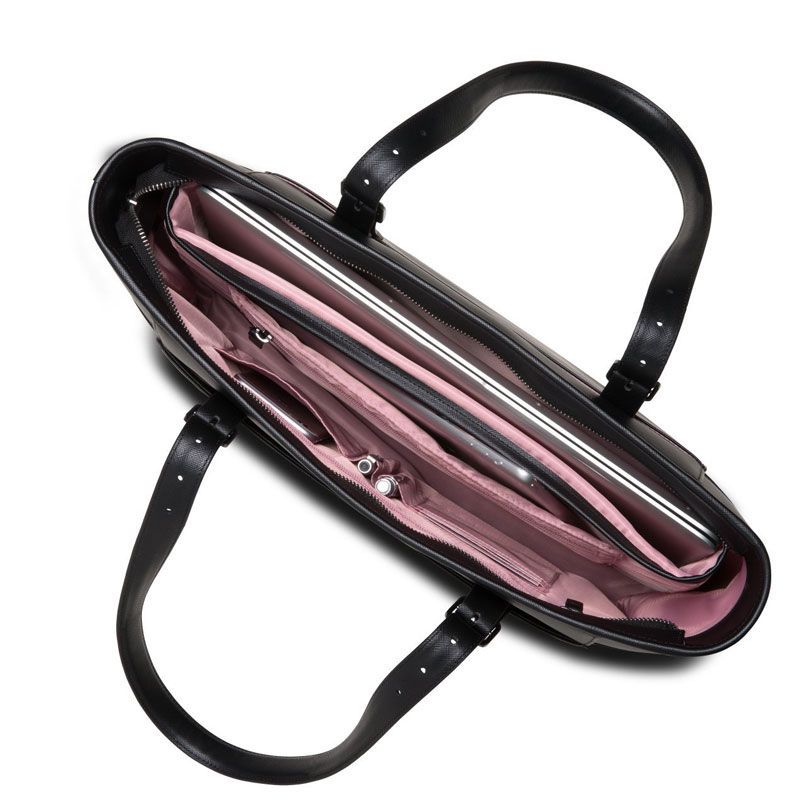 - Manillas de transporte ajustables que facilitan llevar la cartera sobre el brazo o el hombro.