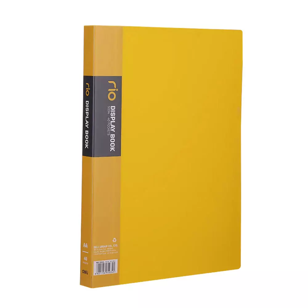 Carpeta de color amarillo Deli con 40 fundas y formato A4 para que guardes todos tus documentos sin perderlos