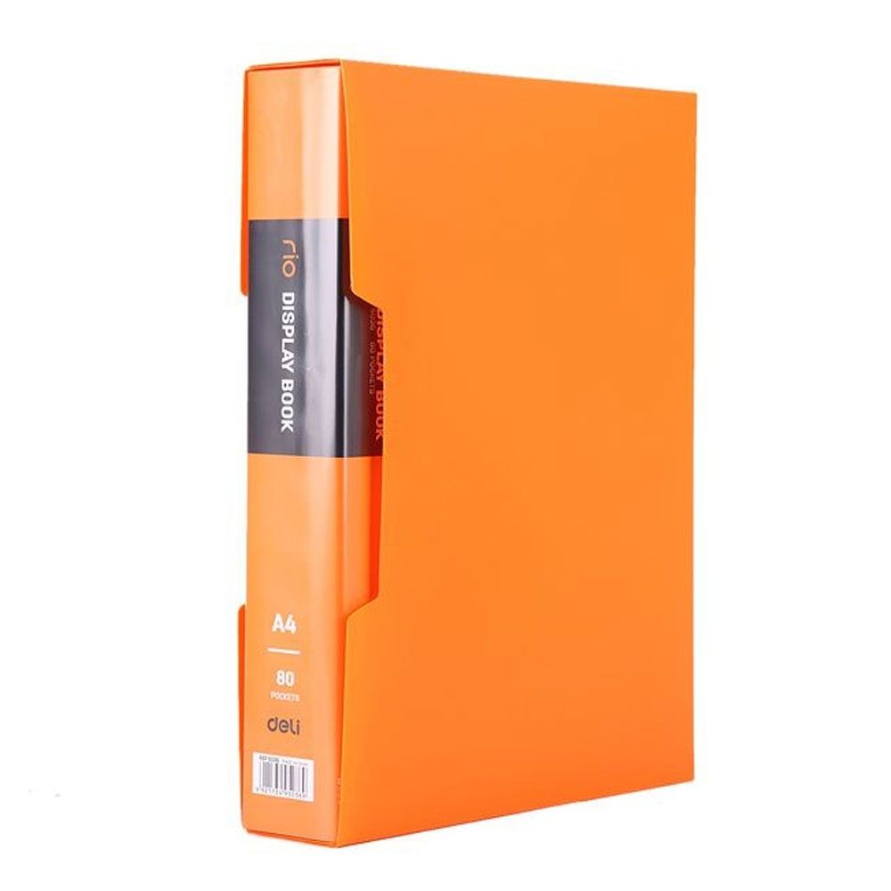 Carpeta de color naranja Deli con 80 fundas y formato A4 para que guardes todos tus documentos sin perderlos