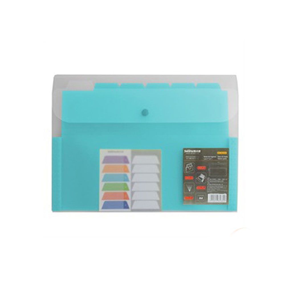 Carpeta plástica con fuelle de 6 divisiones. Ideales para proteger, clasificar, ordenar y transportar documentos con total comodidad y seguridad.