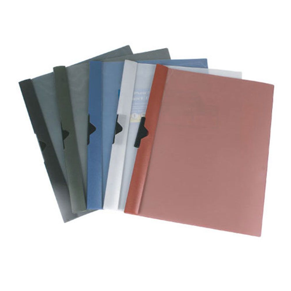 Pack de 6 carpetas plásticas tamaño A4 con clip lateral con capacidad para sujetar hasta 40 hojas.