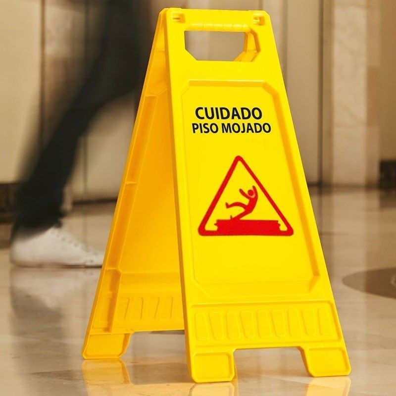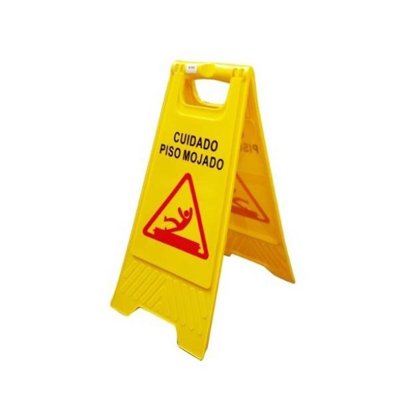 Cartel indicador "piso mojado" ideal a la hora de llevar a cabo la limpieza de pisos, baños o tareas de mantenimiento en general de manera segura.