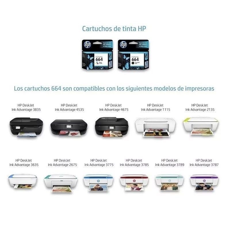 Cartucho Hp 664 f6V29al original de color negro compatible con impresoras Deskjet Ink Advantage 1115, Deskjet Ink Advantage 2135, Deskjet Ink Advantage 3635, Deskjet Ink Advantage 3835.