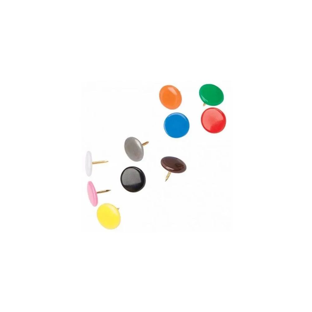 x100 chinches plásticos de colores ideales para carteleras de corcho, con una dimensión de 10 mm.