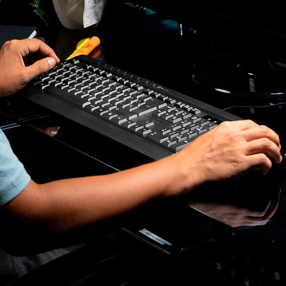 Complementa tu notebook o pc con este estilizado y moderno combo de mouse de 1000DPI y teclado USB, diseño ergonómico de las teclas es suave al tacto, el cual ofrece además una digitación más uniforme y precisa que los botones de un dispositivo convencional. El mouse del dúo, equipado con un sensor de alta definición, se desliza con toda suavidad prácticamente sobre cualquier superficie