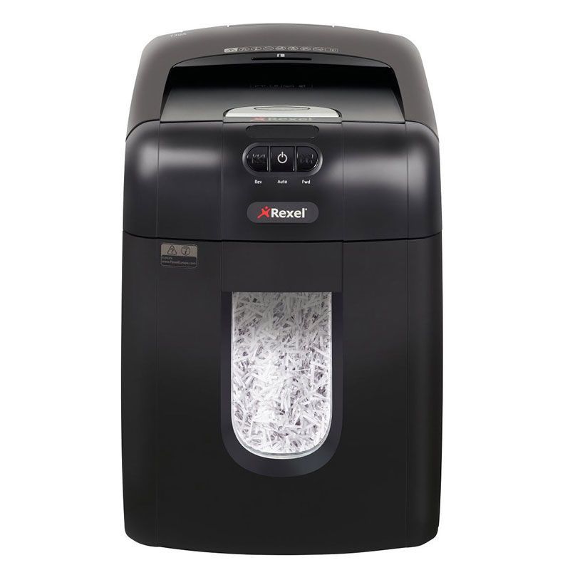 Destructora de papel con poder de 130 hojas a la vez. Tipo de corte en partículas (4X40mm) depositadas en su papelera de 26 litros. Destruye también: grapas, tarjetas de crédito, Clips.