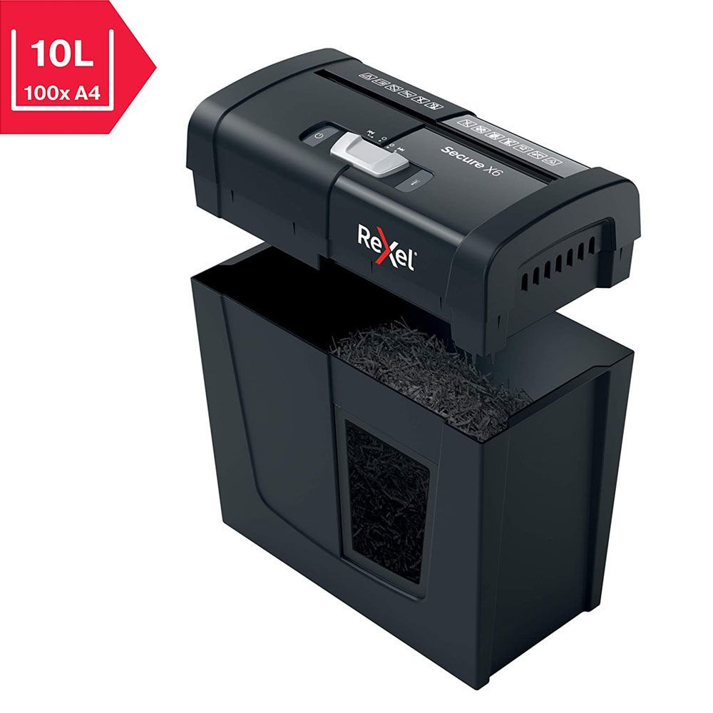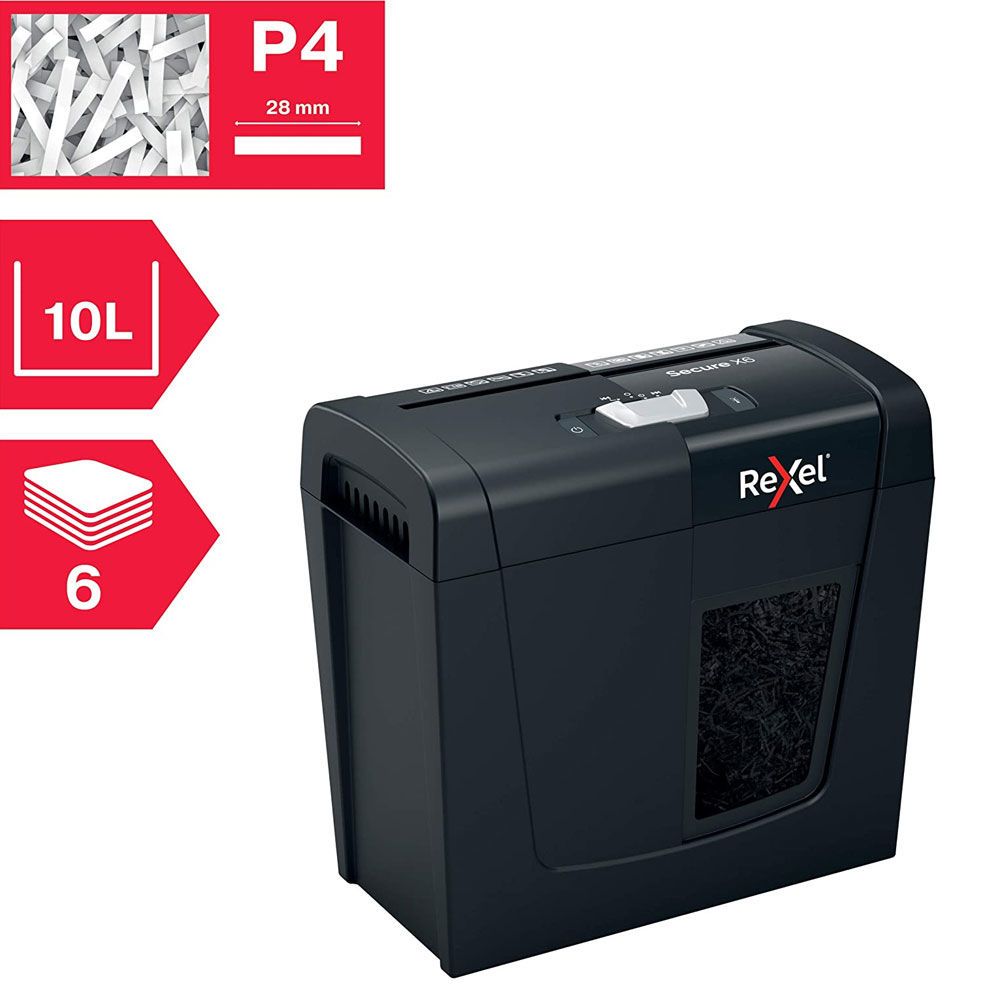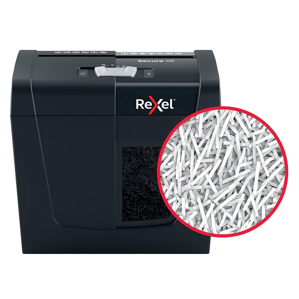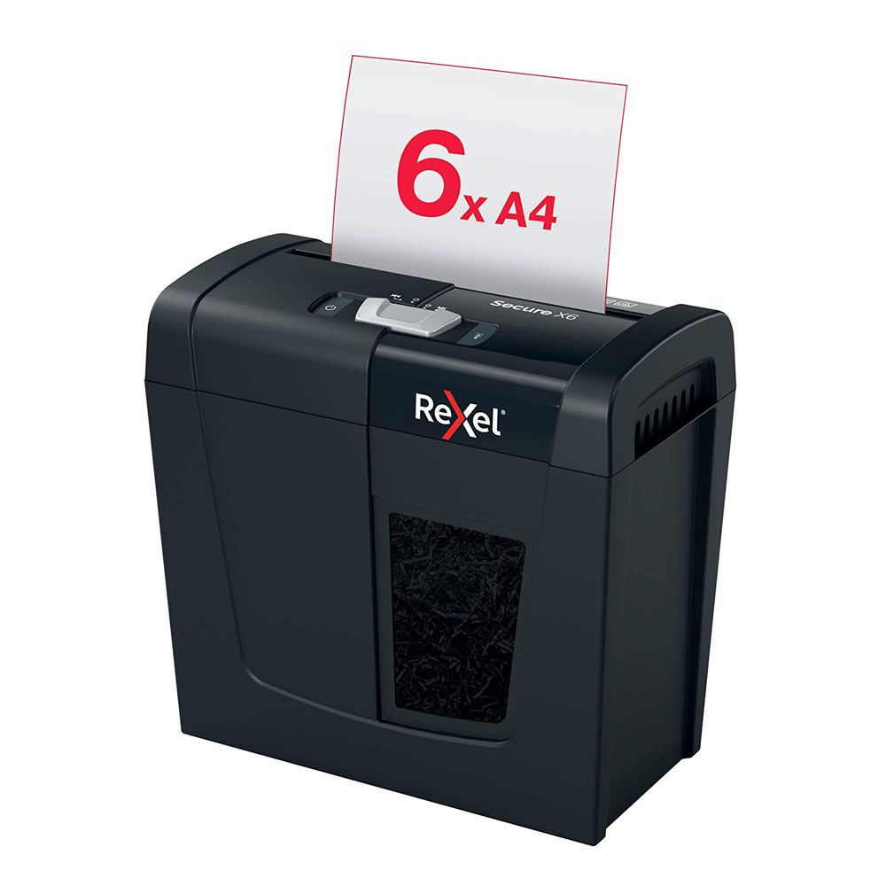 La gama de destructoras de papel Secure de Rexel es ideal para destruir sus documentos personales e información confidencial en casa. La máquina destructora Secure X6 destruye hasta 6 hojas de papel A4 (80 grs) de una sola vez a través de la ranura de alimentación manual en partículas de nivel de seguridad P-4 (4x40 mm)