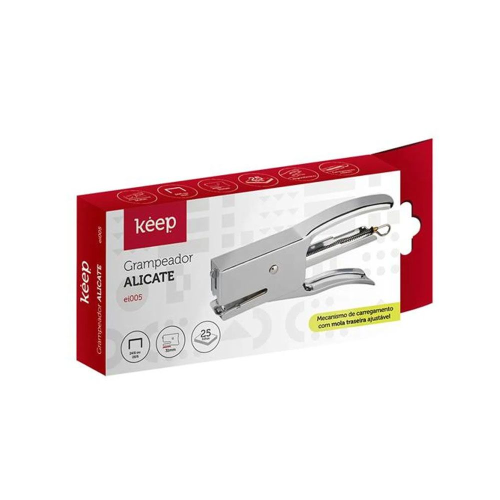 Engrampadora Keep mediana de metal, calidad, cuerpo y mecanismo 100% metálicos. Capacidad de engrampado de hasta 25 hojas 26/6 o 24/6
