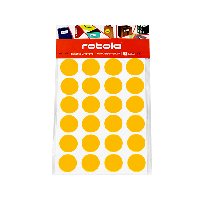 Etiqueta Manual Circular Rotola 120 Unidades 25 mm Naranja- ideal para un etiquetaje temporal.- Se adhiere en todo tipo de soportes, se retira fácilmente sin dejar residuos.- Color: Naranja.- Tipo: Etiquetas auto adhesivas redondas.- Medidas: 25mm x 25mm.- 120 etiquetas.