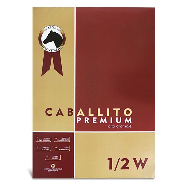 Hojas de Dibujo 1/2W 10 Hojas 180g Caballito- Superficie: blanco mate.- Formato: 70 x 50 cm.