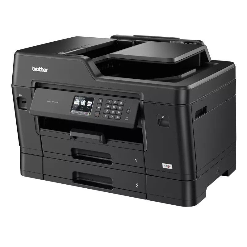 Impresora Multifunción Brother MFC J6730DW, imprimí, copia, escanea y manda fax de documentos hasta tamaño A3, cuenta con impresión dúplex automática, conectividad wifi, una capacidad de salida de papel de 500 hojas. Ideal para empresas y grupos de trabajo ya que ayuda a aumentar la producción con una impresión rápida de 35ppm. Cuenta con una garantía de 1 año