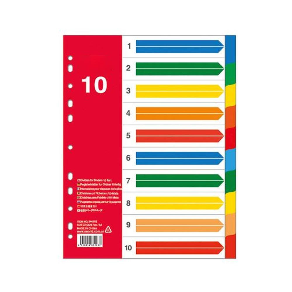Separador plástico tipo índice de colores. Ideales para organizar los documentos en biblioratos. Perforación universal.