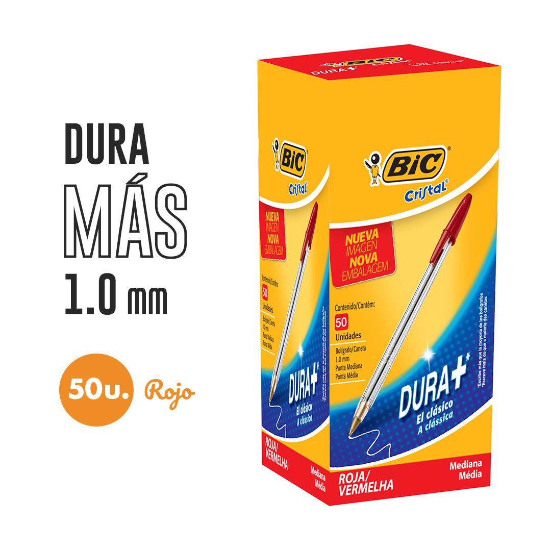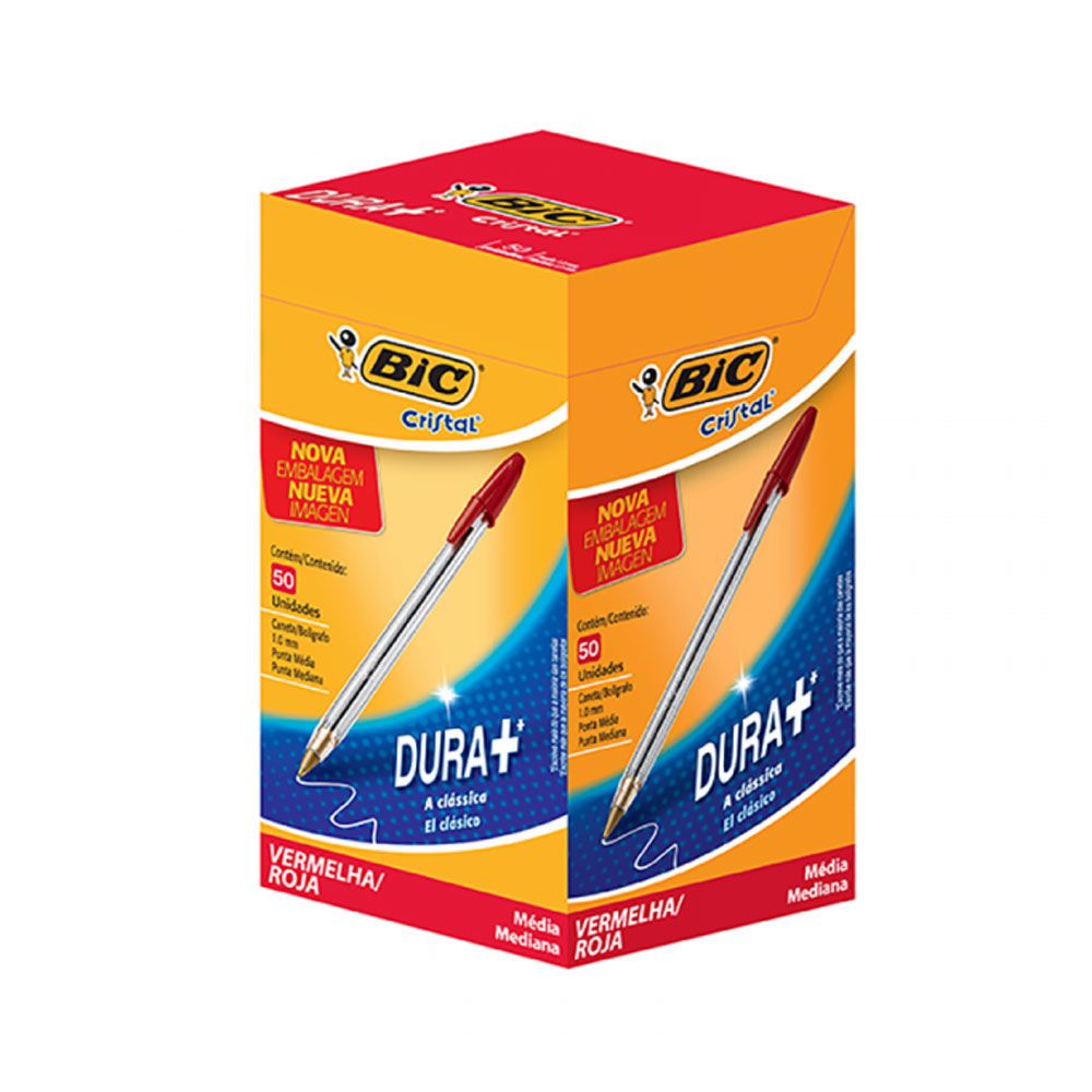 Lapicera Bic Cristal roja, con cuerpo transparente para poder visualizar cuanta tinta resta en el tubo. El cuerpo hexagonal no rueda en la superficie de la mesa y le permite escribir con control y comodidad. Caja Cerrada por 50 unidades