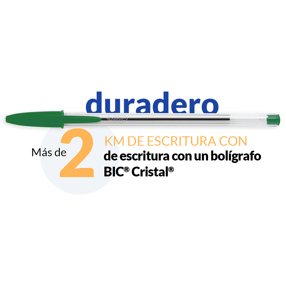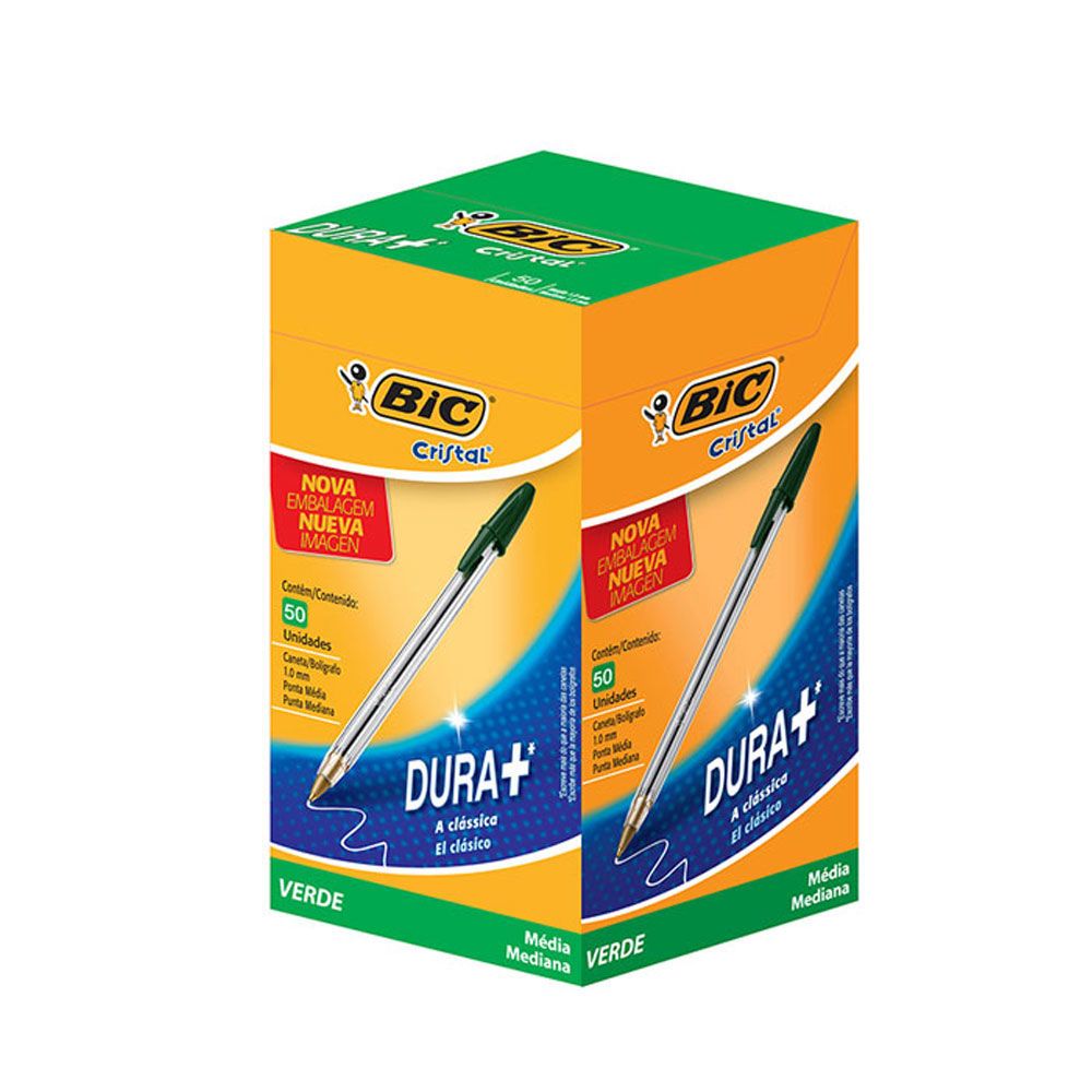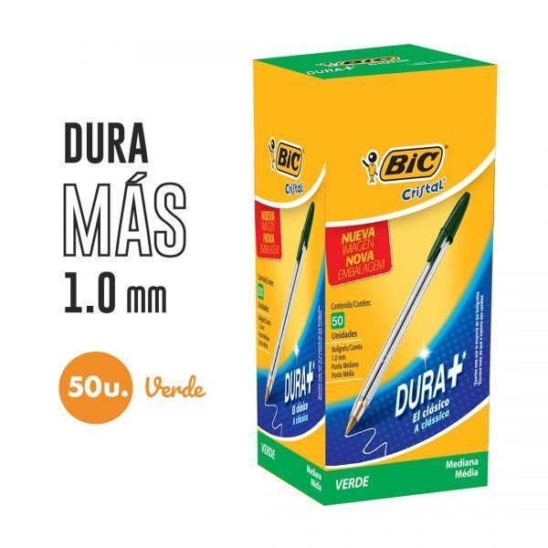 Lapicera cristal Bic x50 unidades color verde punta media cuerpo brillante que indica el color de la tinta. Tinta de fórmula exclusiva y esfera de tungsteno que permite una impecable escritura