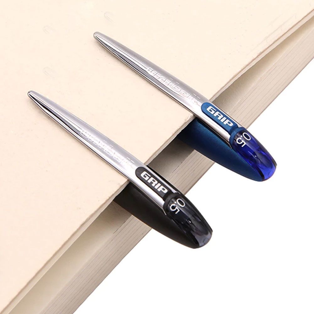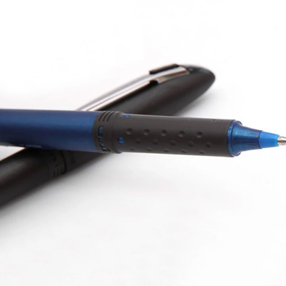 Roller liquido color azul; moderno y funcional con grip de caucho para una sujeción cómoda. Capuchón ventilado y clip metálico. Tinta pigmentada resistente al agua y a la luz, ideal para documentos de gran durabilidad.