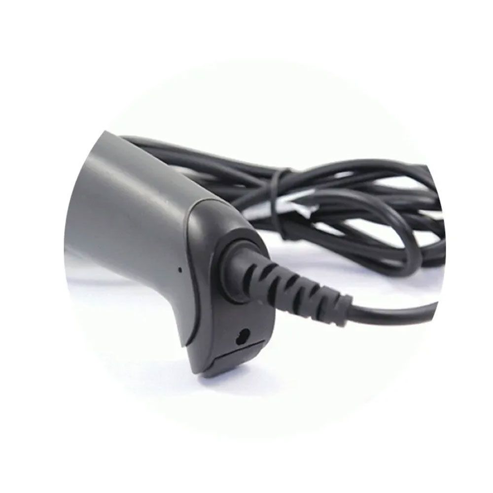Lector laser con base, con una velocidad de lectura de 300 escaneos por segundos, entrada USB 2.0, cuenta con función plug&play, solo es necesario conectar el lector de código de barras y comenzar a usar sin necesidad de instalación, es portátil que lo hace fácil de transportar donde sea necesario