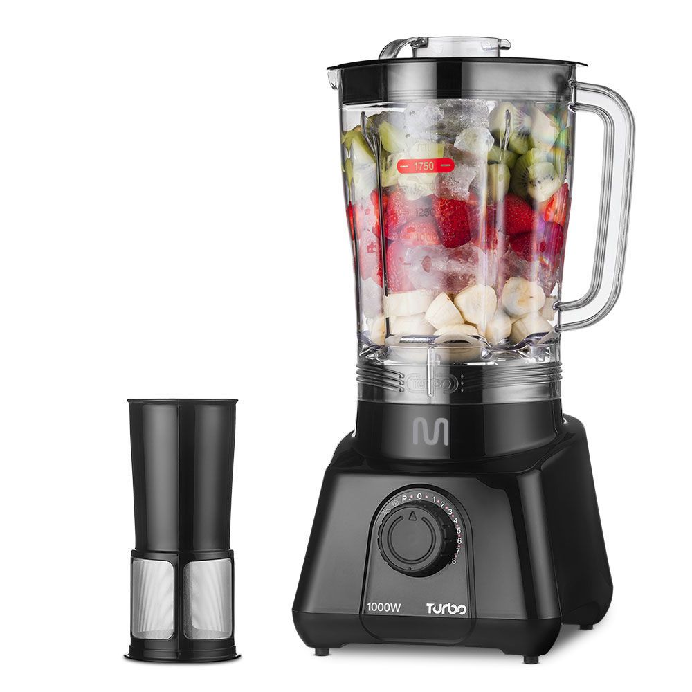 Con el Multi Turbo LQ1002 tienes fuerza, calidad, potencia y eficiencia todo en un solo producto con un volumen total de 2,6L , además de acompañar un filtro separador de semillas y fibras súper eficiente, también lleva un vaso medidor de media taza (120 ml)