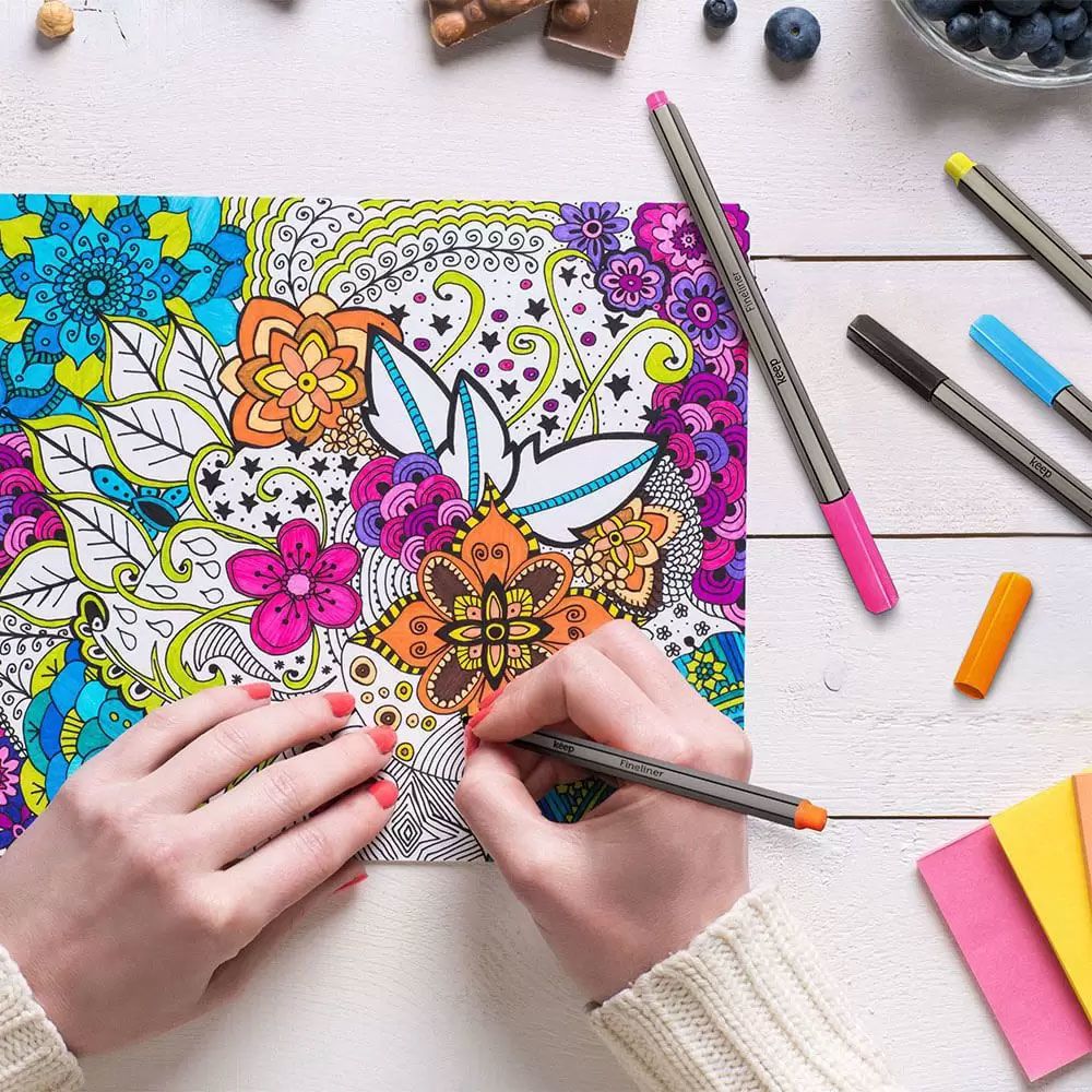 Marcador fino con 10 colores vivos y vibrantes con una punta ultra fina de 0,4 mm, ideal para usar en diferentes superficies de papel