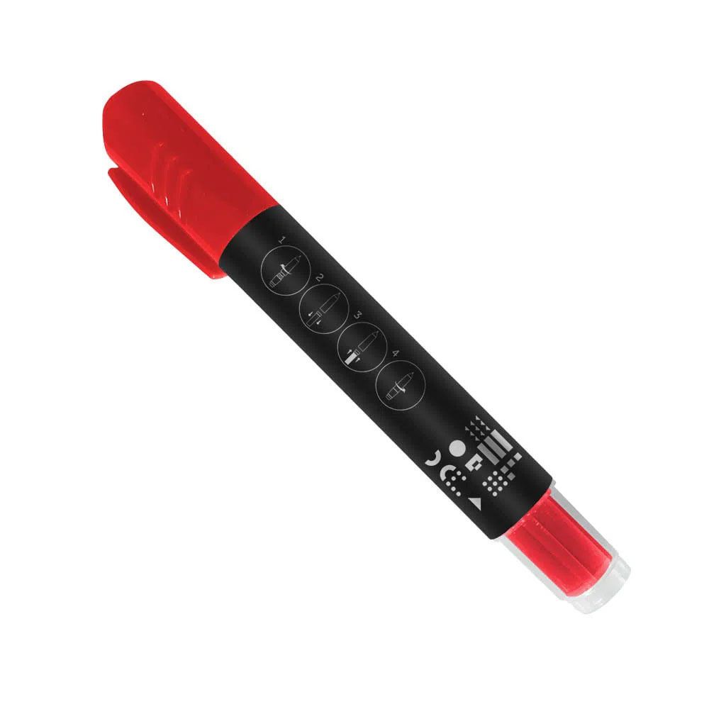 Marcador permanente con punta biselada de 2-4mm es posible utilizarlo en diversas superficies, como papel, madera, metal, vidrio, entre otras. Tiene un alto rendimiento y se puede recargar con un simple cambio de cartucho de tinta