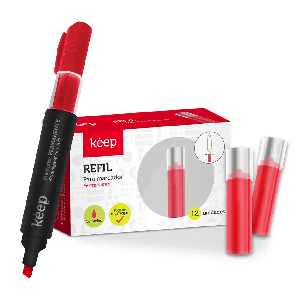 Marcador permanente recargable Rojo MR015 + Recarga marcador x12 Keep MR016