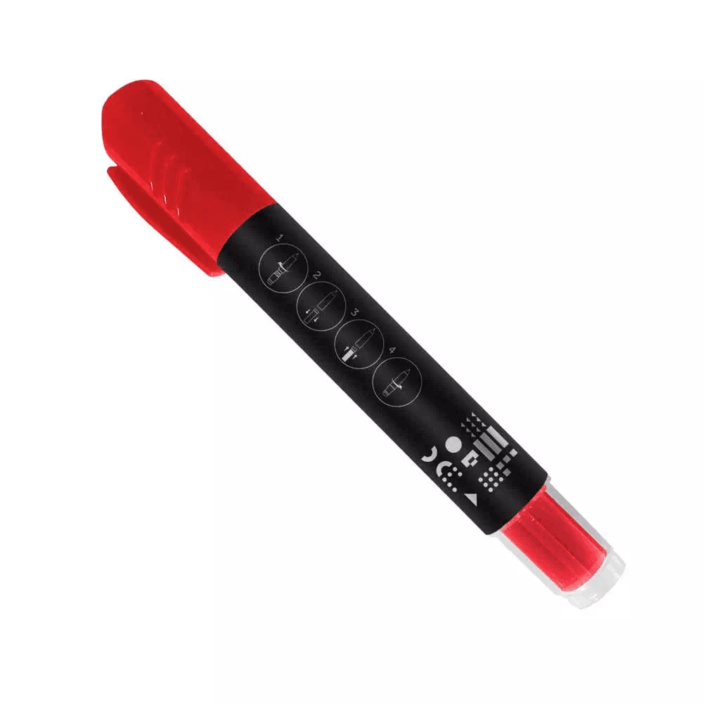 Marcador permanente con punta biselada de 2-4mm es posible utilizarlo en diversas superficies, como papel, madera, metal, vidrio, entre otras + Tinta para marcadores permanente Keep de color rojo, proporciona una recarga sin contacto con la tinta.