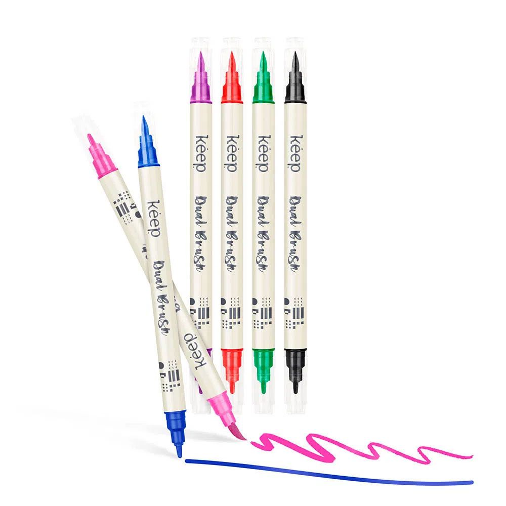 Marcador Punta Pincel Dos Puntas x5 Keep
