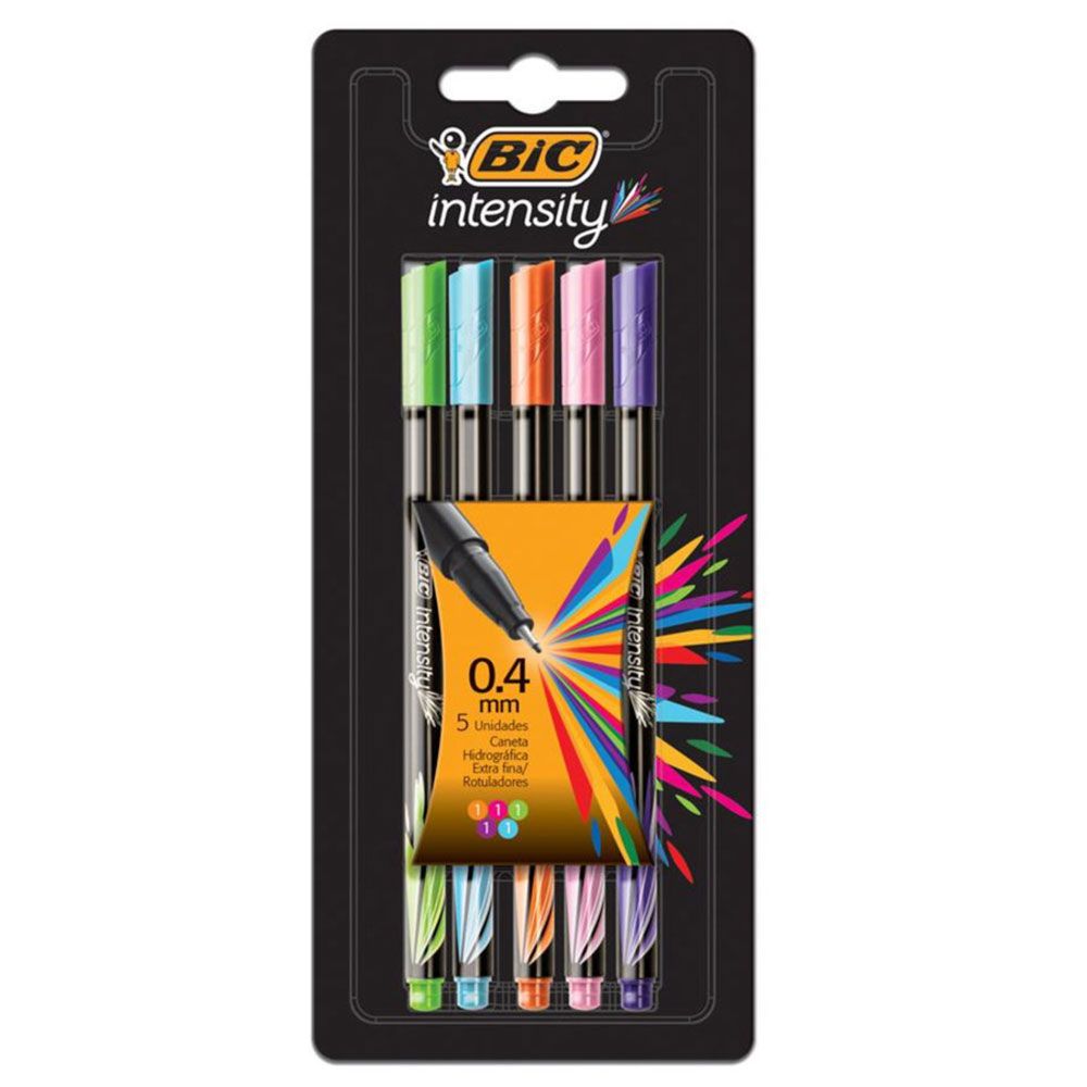 Pack de 5 marcadores BIC intensity con punta 0.4mm, tinta vibrante y suave a base de agua que no se derrame a través del papel, los resultados pueden variar según las características del papel.