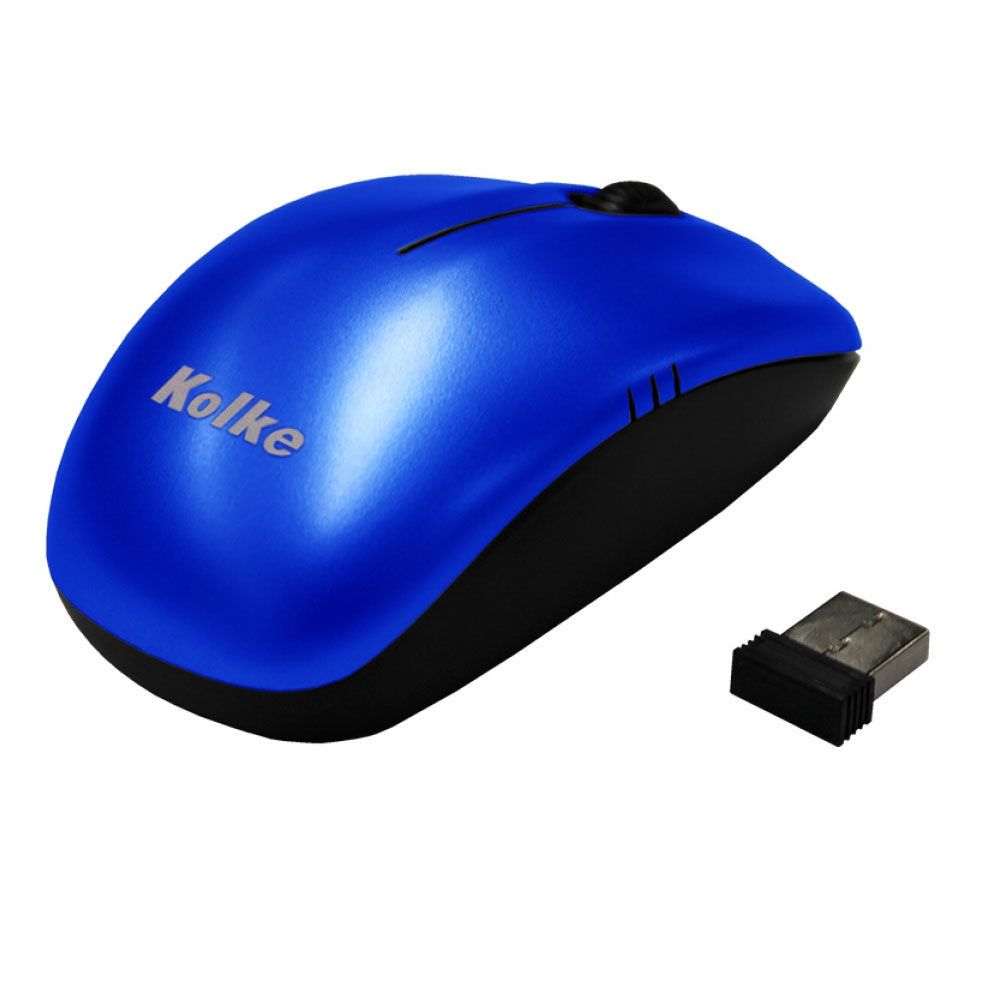 Mouse Kolke KEM 365 color azul con una resolución de 1200dpi, conexión inalámbrica USB, solo es necesario conectar el receptor USB a tu pc o notebook y comenza a usarlo sin necesidad de instalar nada, tiene un alcance de hasta 10 metros y 3 botones mas una ruedita para un scroll mas suave y sencillo. Compatible con sistema operativo Windows