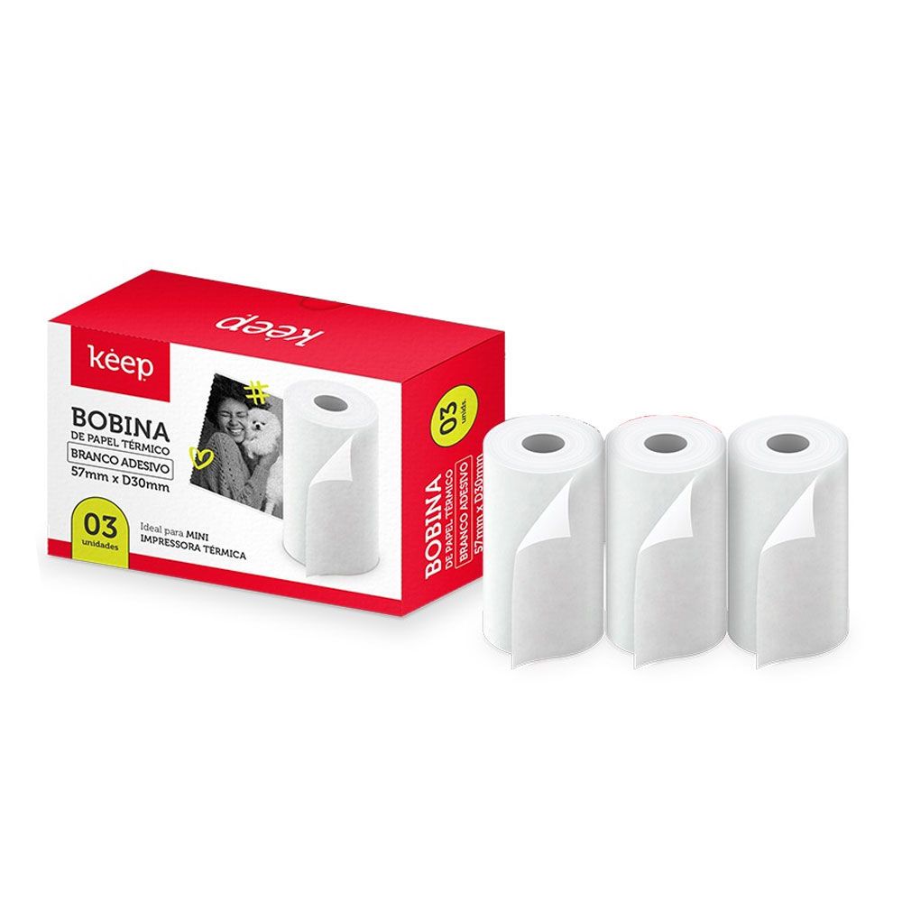 Pack x3 rollos papel térmico adhesivo 57 x 30mm Keep