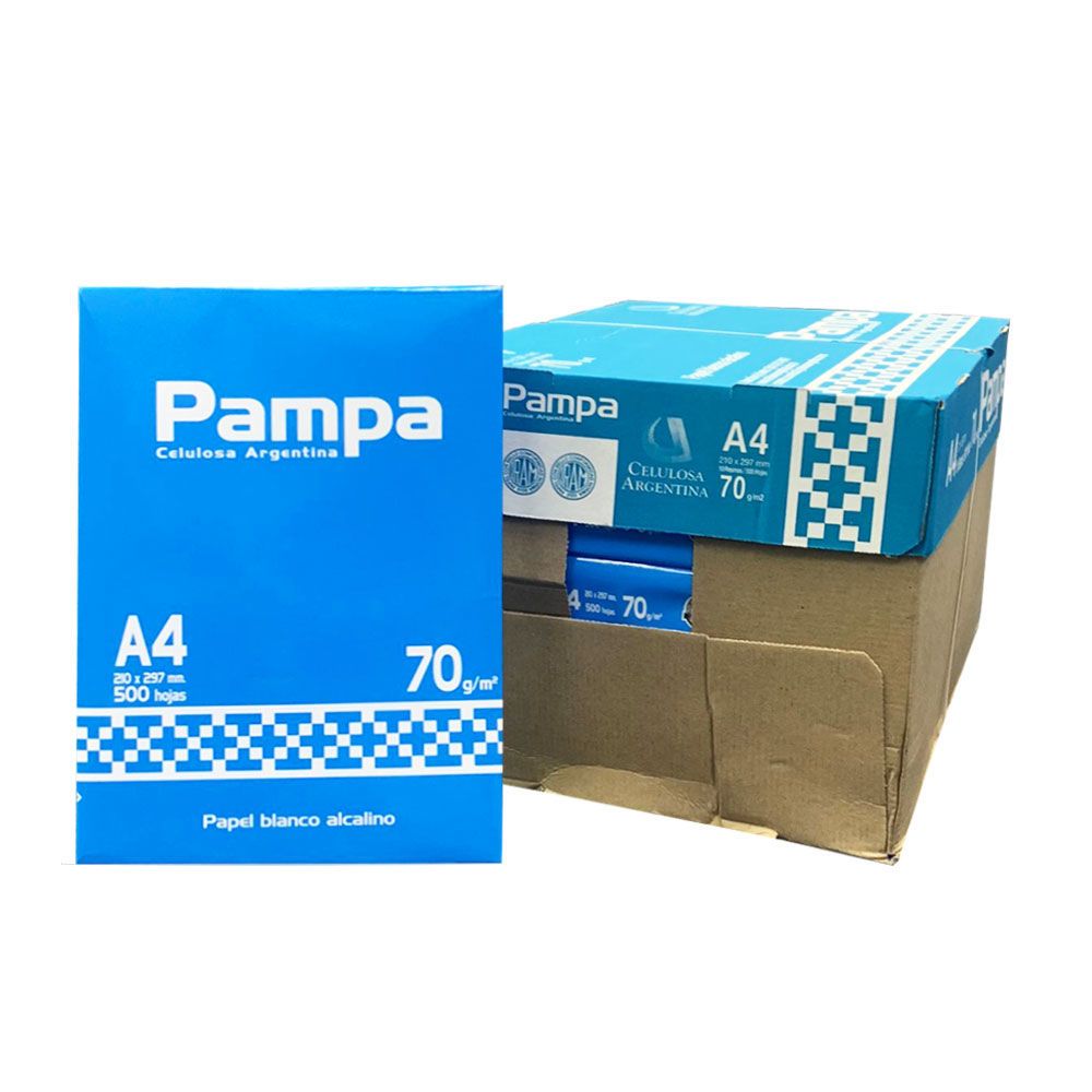 Papel Fotocopia Pampa 70g x 10 con formato A4 diseñado para ofrecer una alta performance en sus Impresiones, elaborado con fibras cultivadas, paquete x 500 hojas.