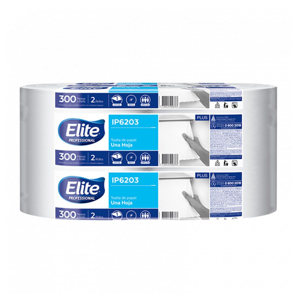 Toalla de papel Elite de 300m blanca intercalada de hoja simple pre cortada tipo rollo. Resistentes suaves y absorbentes Ideales para lugares de tránsito alto. Modelo anterior IP558.