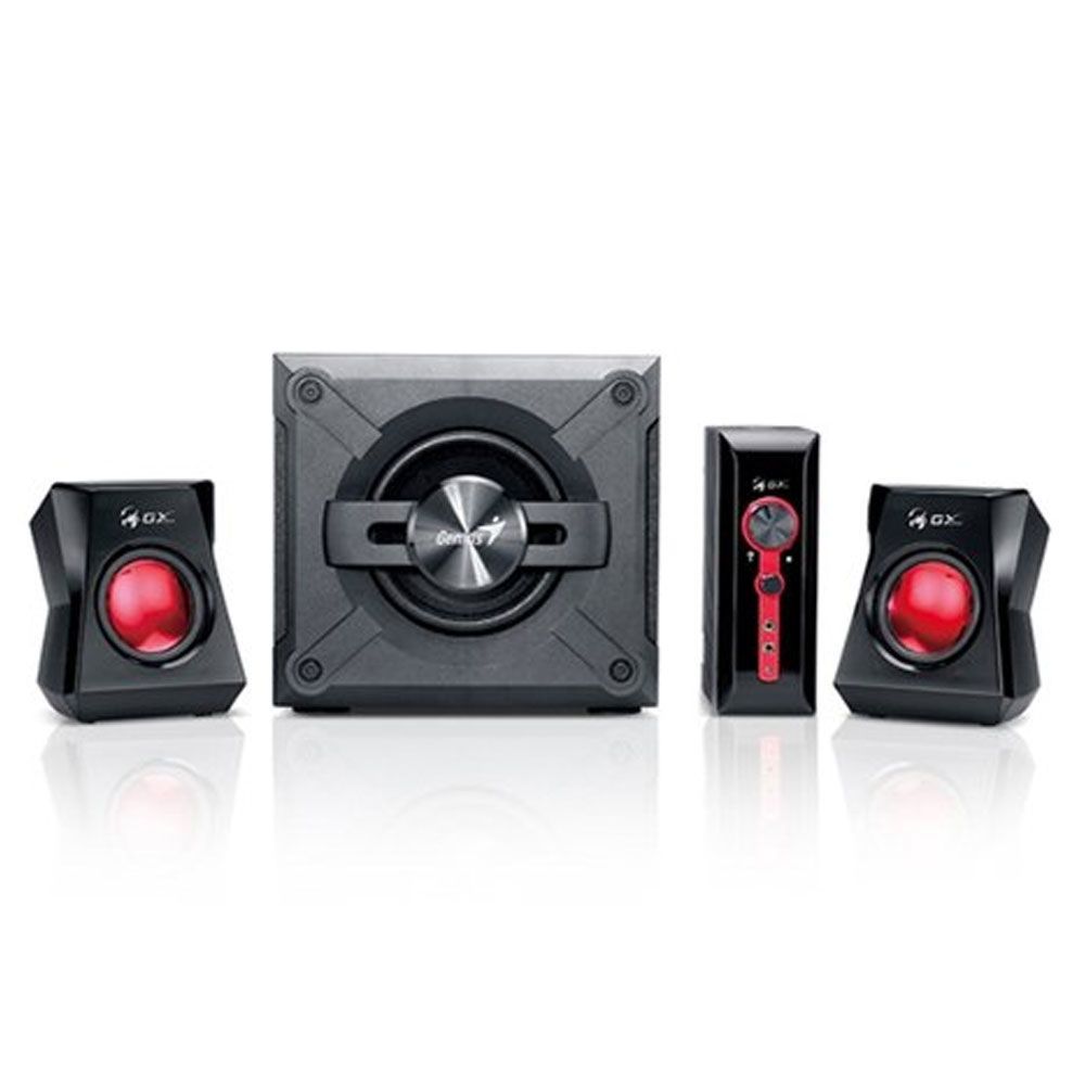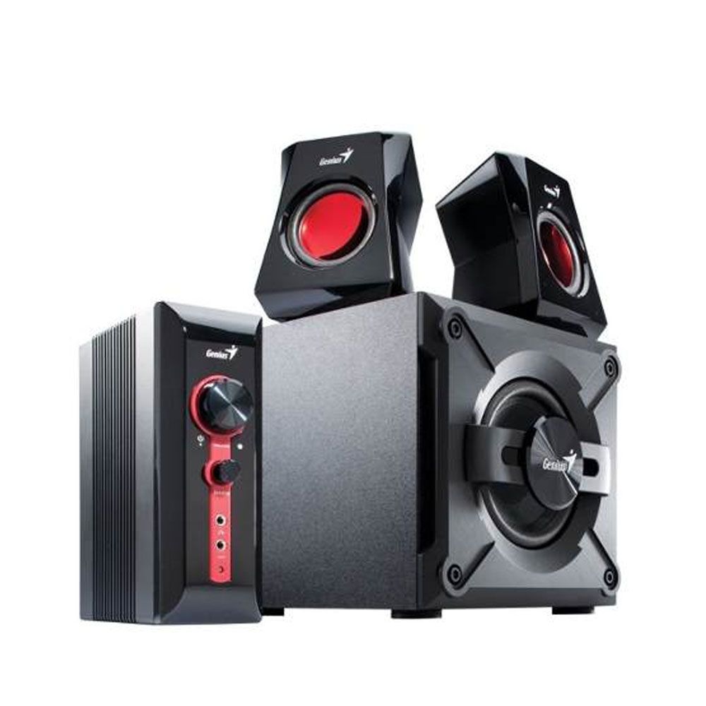 Genius presenta un excelente juego de parlantes para los entusiastas de la música y los juegos, el SW-G2.1 1250. Su unidad de graves de 5.25''; fabricada en MDF ultra resistente, que le permite obtener sonidos graves potentes y extendidos. Los parlantes secundarios curvilíneos con conos de protección magnética de 3'' producen un sonido total de rango medio y de gran claridad.