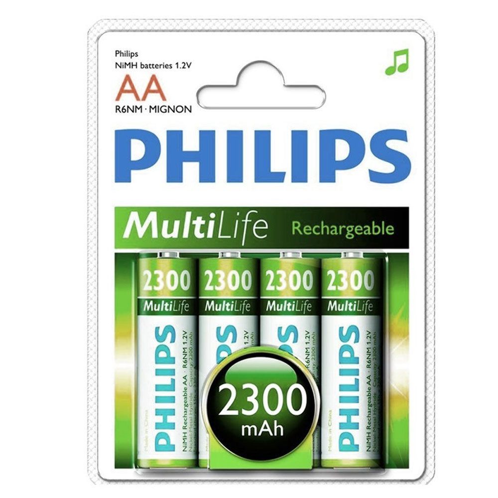 Pila AA Recargable Philips x4 2300mAh, ideal para tus dispositivos que consumen mucha energía. Estas accus AA de gran capacidad no necesitan descargarse antes de volverse a cargar; todo lo que tienes que hacer es recargarlas cuando lo necesites.
