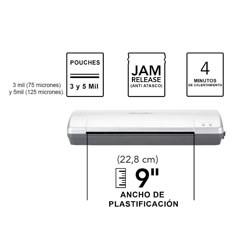 - El ancho máximo de documento de 22,8 cms, perfecta para laminar documentos de tamaño carta, dibujos, documentos,