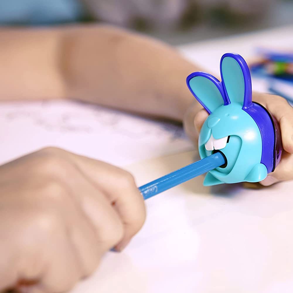 Divertido sacapuntas en forma de conejo para aprender a sacar puntas: sus dientes se mueven si se gira el lápiz en el sentido correcto. Súper bonito y súper divertido.
