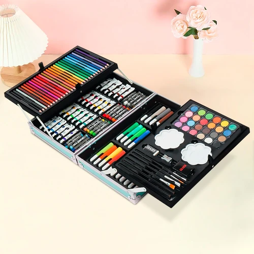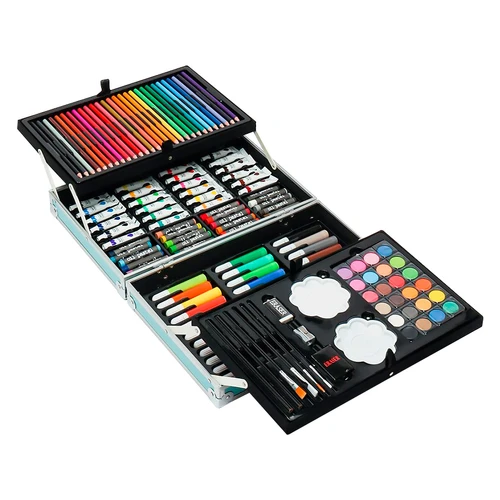 Set Completo de Pintura con 145 Piezas, Incluye Acuarelas, Marcadores, Lápices, Pinturas Acrílicas, Pasteles al Óleo, Pinceles, Paleta y Accesorios + Maletín - Azul