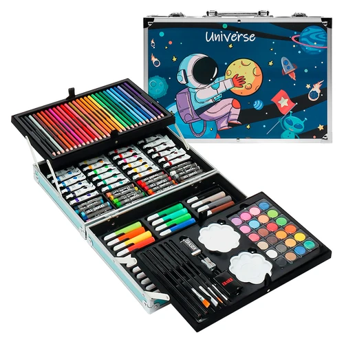 · Incluye 145 piezas para dibujar y pintar, además de un práctico maletín