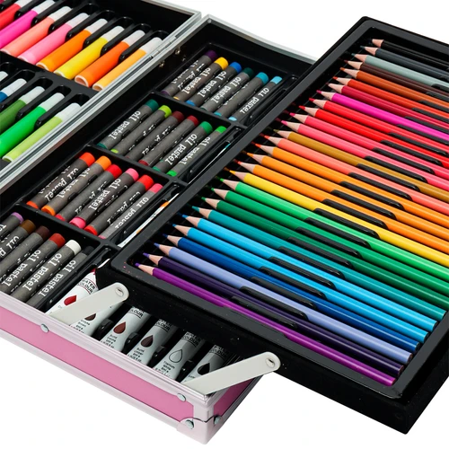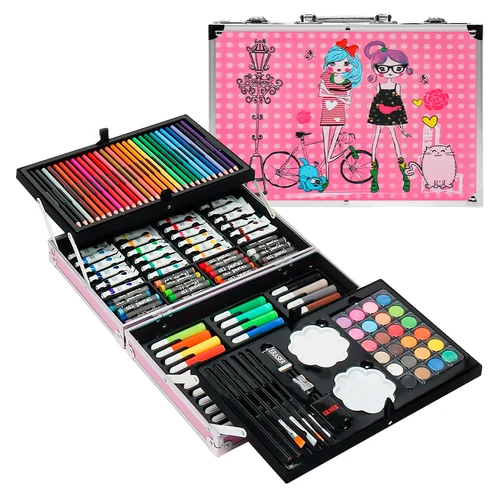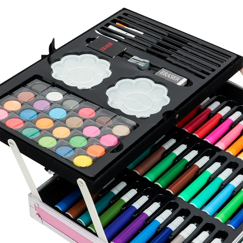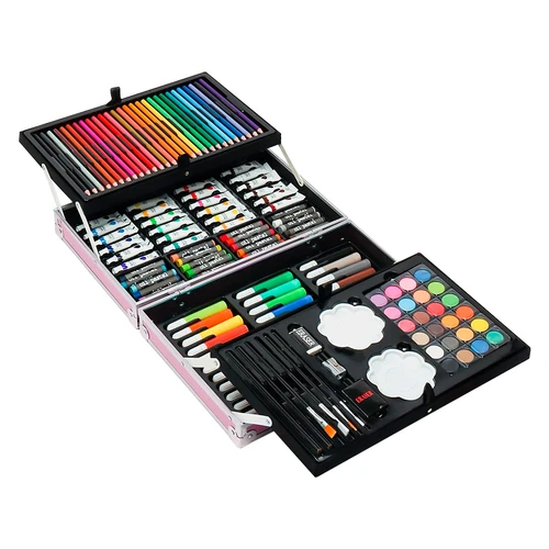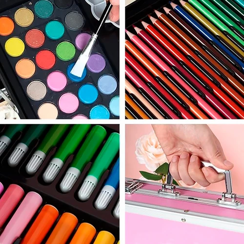 Set Completo de Pintura con 145 Piezas, Incluye Acuarelas, Marcadores, Lápices, Pinturas Acrílicas, Pasteles al Óleo, Pinceles, Paleta y Accesorios + Maletín - Rosado