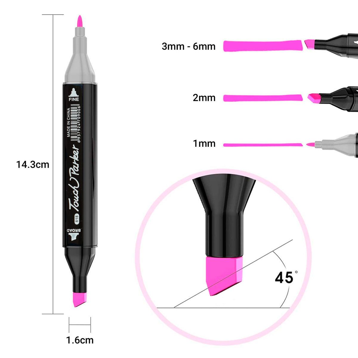 | Tipo de punta | Doble punta: punta fina de 1mm y punta de cincel de 3-6mm |