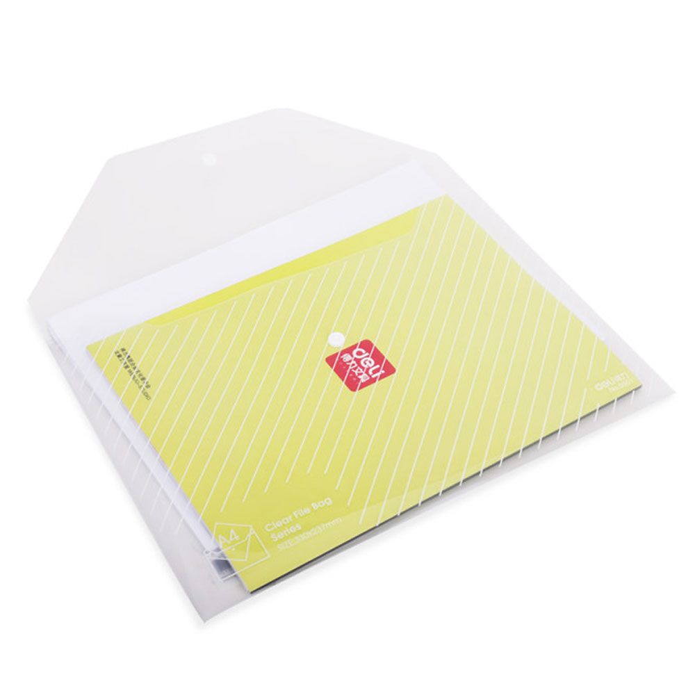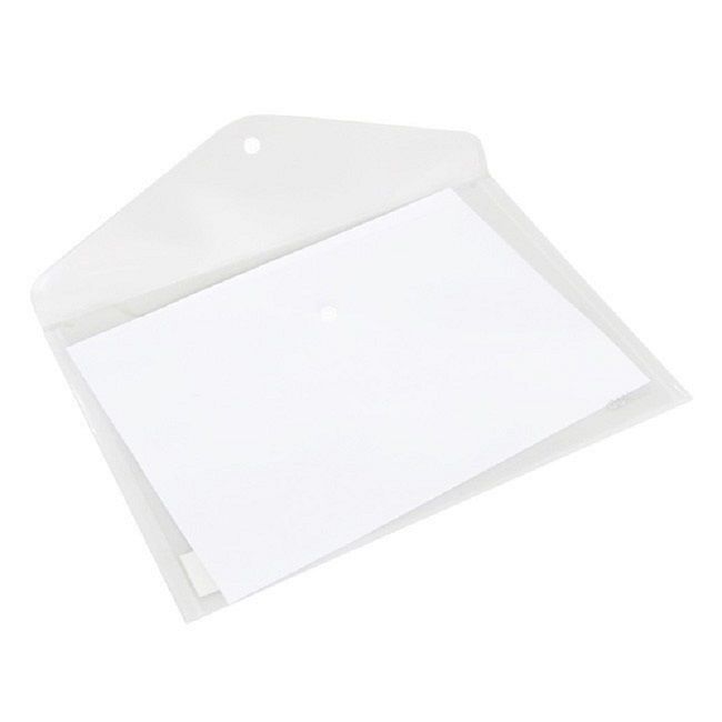 Sobre de PVC traslúcido con apertura horizontal y cierre con broche plástico de seguridad. Ideal para protección y transporte de documentos que requieran un rápido acceso. Formato A4.