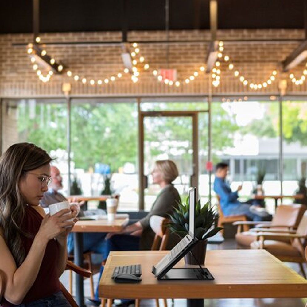 - La estructura plegable de doble pie de apoyo proporciona opciones adicionales de visualización y flexibilidad de altura dentro de un espacio de escritorio que ahorra espacio.