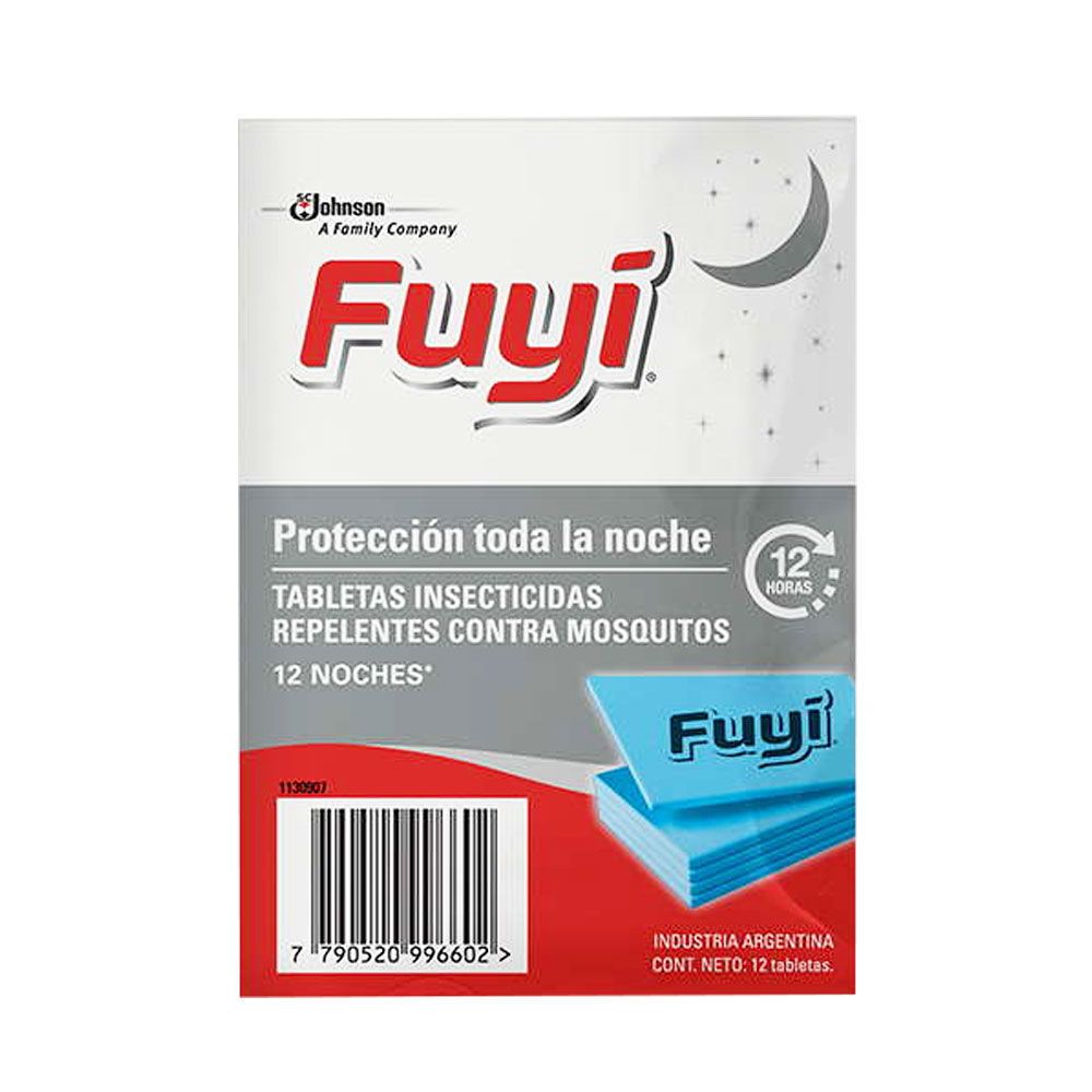Tableta insecticida repelente Fuyi protección toda la noche. Mata y repele mosquitos por hasta 12 horas.